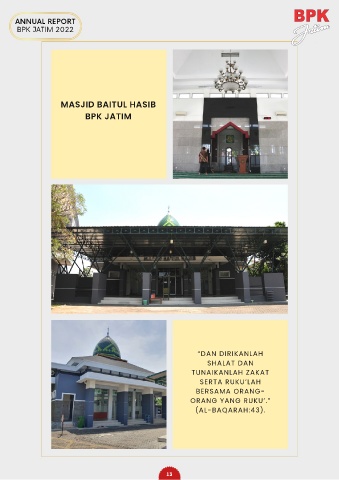 ANNUAL REPORT BPK JATIM 2022 MASJID BAITUL HASIB BPK JATIM “DAN DIRIKANLAH SHALAT DAN TUNAIKANLAH ZAKAT SERTA RUKU’LAH BERSAMA ORANG- ORANG YANG RUKU’.” (AL-BAQARAH:43). 13