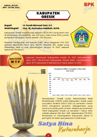opini WTP. Pemerintah Kabupaten Gresik telah mendapatkan