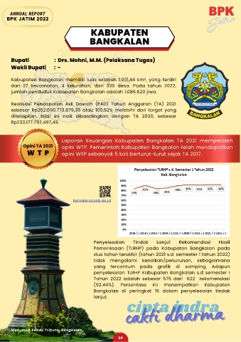 Opini TA 2021 opini WTP. Pemerintah Kabupaten Bangkalan telah mendapatkan